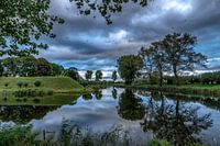 Op een rustige avond, met bijna geen wind, is het oppervlak van de gracht erg glad en reflecteert het als een spiegel.