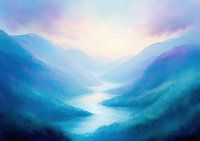 Koop dit landschapskunstwerk Rivierdal Landschap | Dreamy Escape van Abstract Schilderij op canvas, aluminium dibond, (ingelijste) fotoprint, behang en ArtFrame, op maat geprint in Fine-Art kwaliteit.
