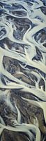 Een luchtfoto van een van IJsland's vele prachtige rivierdelta's die uitmonden in de oceaan