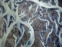 Een luchtfoto van een van IJsland's vele prachtige rivierdelta's die uitmonden in de oceaan
