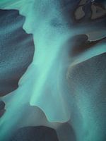 Een luchtfoto van een van IJsland's vele prachtige rivierdelta's die uitmonden in de oceaan