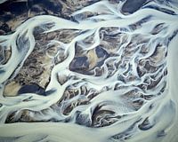 Een luchtfoto van een van IJsland's vele prachtige rivierdelta's die uitmonden in de oceaan