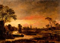 Koop Rivierlandschap, Aert van der Neer als reproductie op canvas, aluminium dibond, (ingelijste) fotoprint, behang en ArtFrame, op maat geprint in Fine-Art kwaliteit.