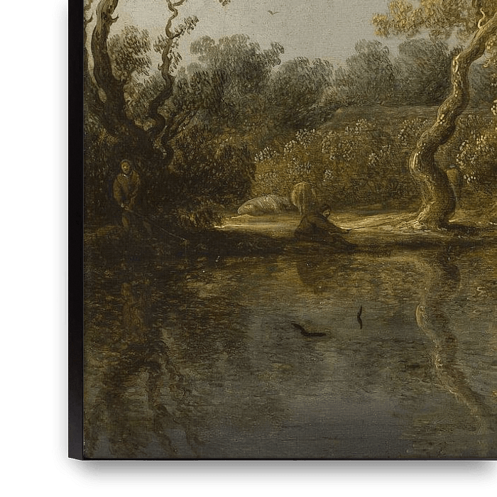Koop Rivieroever met Oude Bomen, Salomon van Ruysdael als reproductie geprint op canvas, aluminium dibond, (ingelijste) fotoprint, behang en ArtFrame. Voor jou op maat geprint in Fine-Art kwaliteit.