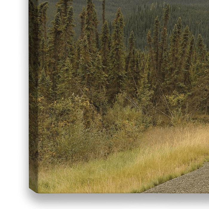 Een onverharde slingerweg door het prachtige landschap van het noorden van Alaska