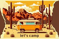 Beleef het avontuur met een oranje camper busje door de Mojave woestijn in de jaren 50! Onze vintage poster neemt je mee op reis door deze indrukwekkende woestijn, vol cactussen en uitgestrekte landschappen. Deze poster is een must-have voor liefhebbers van vintage, kamperen en avontuur!"