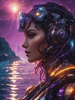 Dit is een portret van een robotica vrouw. Ze is gemaakt van metaal en uitgerust met kunstmatige intelligentie. Ze is een technologische evolutie. Hoe gaat de toekomst als de technologie zich blijft ontwikkelen?