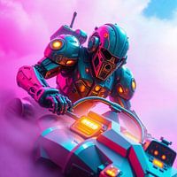 Robot met speciaal voertuig type 2 - Robot met speciaal voertuig op missie in de roze mist