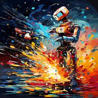 Dit abstracte canvas kunstwerk verkent de wereld van robotisering en automatisering. Een moderne reflectie op technologie en haar invloed op de bedrijfswereld.