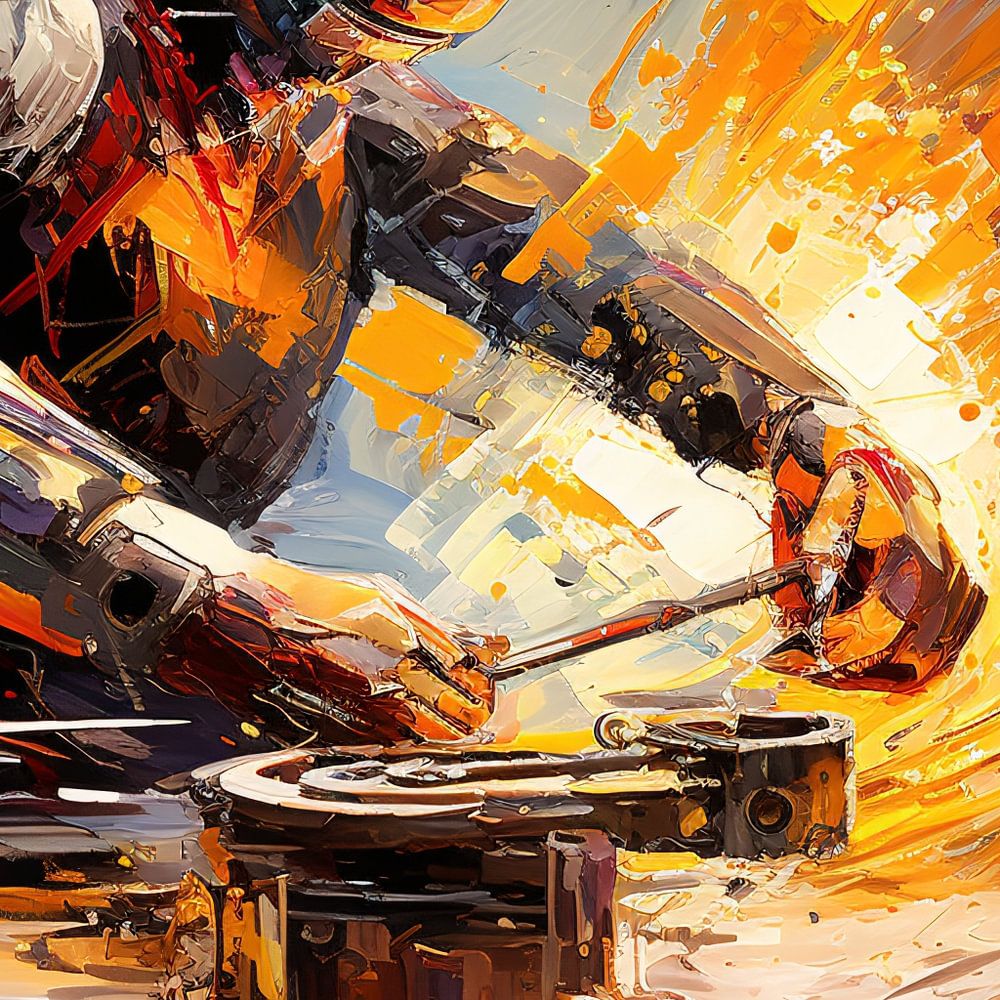 Duik in de toekomst van technologie met dit canvas kunstwerk dat robotisering aan de werktafel viert. De abstracte en golvende bewegingen symboliseren de integratie van machines in onze dagelijkse taken. De dikke verf in impasto stijl voegt diepte en textuur toe, ideaal voor een Art Frame of Canvas met baklijst.