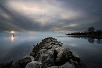 Meren en rock formaties, je vind ze veel in Nederland. Tijdens de zonsondergang in Zuid holland kan de zon nog net door de wolkenvelden heen schijnen. Het kalme water geeft een mooie serene beeld.