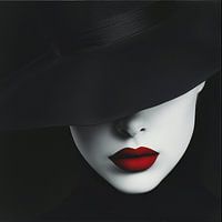 Dit portret is meer dan alleen afbeelding; het vertelt een verhaal. Het zwart straalt een gevoel van diepte en mysterie uit, wat uitnodigt tot verkenning en contemplatie. Het rode detail voegt een element van energie en vitaliteit toe, symboliseert liefde, kracht en vrouwelijke kracht. Dit werk roept emoties op die resoneren met mensen/vrouwen, die de waarde van diepte en subtiliteit in hun leven begrijpen en waarderen.