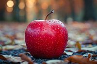 Breng de natuur naar binnen met deze prachtige foto van een rode appel op een bedje van bladeren. Perfect voor in de keuken of slaapkamer.