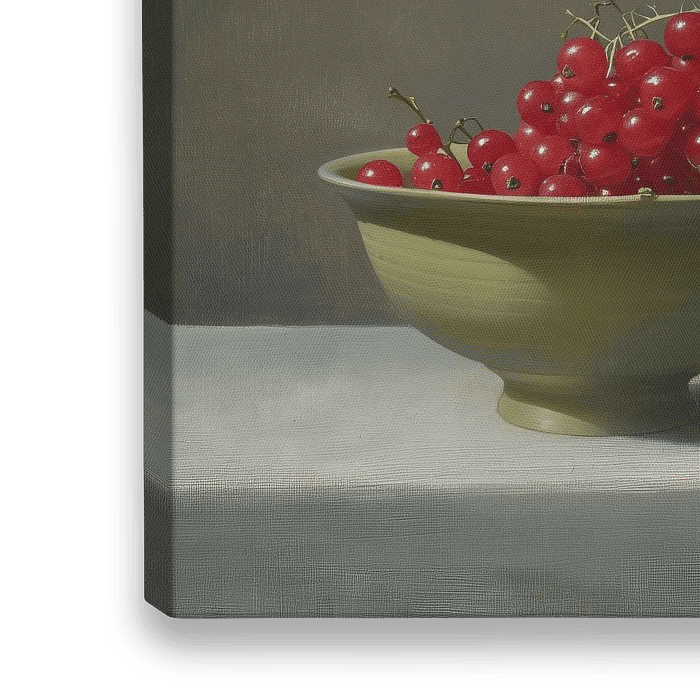 Details: rode bessen, stilleven, groene schaal, natuurlijk licht, schilderij, kunst, realisme, fruit, tafel,…