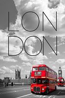 Rode bussen op Westminster Bridge met de Big Ben op de achtergrond. Karakteristiek motief uit de Britse hoofdstad.