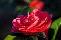 Close-up van de bloem van een rode Camellia plant.