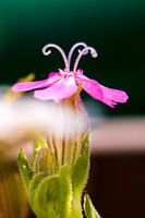 Deze wilde bloem, de Rode Campion, of ook wel de Avondkoekoeksbloem, staat bij mij op het balkon te shinen, om zo de bijen naar zich toe te lokken. De stampers komen mooi uit tegen de donkere achtergrond.