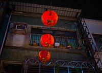 Terwijl ik door de straten van Taipei dwaalde, kwam ik uit op Raohe Street Night Market. Raohe staat bekend als een paradijs voor fijnproevers. Op een steenworp afstand van het Songshan-treinstation worden bezoekers begroet door de prachtige Songshan Ciyou-tempel die het begin van de beroemde eetstraat flankeert. Ik zag deze lantaarns in een zijstraat en vind dat ze mooi uitkomen tegen de donkere achtergrond.