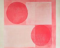 Rode Cirkels | Harmonie in Rode Tinten - Dit abstracte schilderij bestaat uit levendige roze en rode tinten, met twee dominante cirkels en een groot vierkant die een gevoel van balans en harmonie creëren.