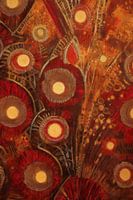 Dit werk laat een boeiend spel van cirkelvormige patronen zien, uitgevoerd in warme rood- en goudtinten. De diverse grootte van de cirkels en de subtiele texturen geven het werk een dynamisch en levendig karakter. De rijke kleuren en complexe structuren zorgen voor een gevoel van warmte en energie, wat dit werk ideaal maakt voor een levendige toevoeging aan elk interieur. Perfect voor liefhebbers van abstracte kunst en intrigerende patronen, brengt dit werk een vurige en uitnodigende sfeer in de ruimte.