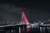 Eens in de zoveel tijd krijgt de Erasmusbrug in Rotterdam een ander kleurtje. Dit keer was het rood! een mooi contrast met de donkere nacht