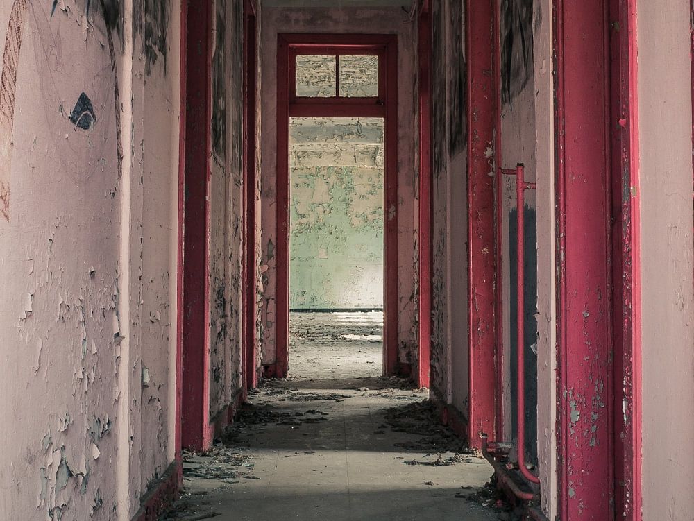 Urbex, Verval, Oud, Graffiti, Roest (metaal), Verlaten, Kapot, Een Verlaten Stad, Mysterie, Spookstad, Rood (kleur), Gang, School
