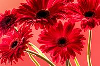 Rode ton sur ton bloemen aan de achterkant belicht. Kleurrijk aan de muur