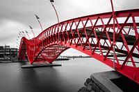 In deze zwarwitfoto is alleen Rood de kleur die je wel ziet. Dit maakt het een mooi kunstwerk voor aan de muur.