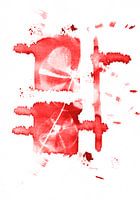Dit monochroom rood werk is gemaakt met verfvlakken en gedroogde klavers. Een abstract werk voor natuurliefhebbers!