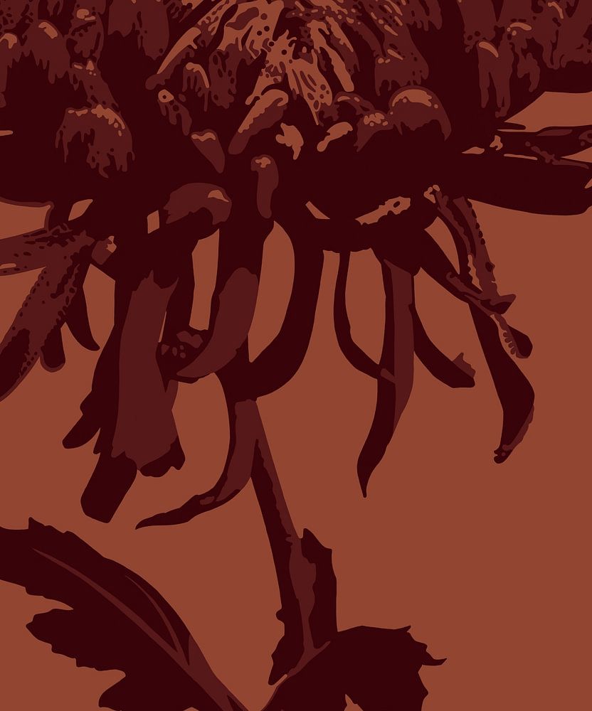 Een illustratie van een bloeiende plant in verschillende rode tinten tegen een donker oranje achtergrond. Het contrast van de plant tegen de avondlucht vondt ik prachtig en dit wilde ik graag vastleggen in deze tekening. De oranje en rode kleuren geeft het beeld een retro uitstraling.