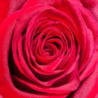 Roos in diep rode kleur, vierkant gesneden. Gefotografeerd door Gert Hilbink.