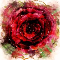 Ik heb het werk "Rode Roos" gemaakt, waarop een gedetailleerde, grote rode roos frontaal te zien is in aquarel. Deze knalrode roos zal door zijn felle gebruik van de kleur rood van de muur af spatten en zeker een ware blikvanger zijn in uw interieur.