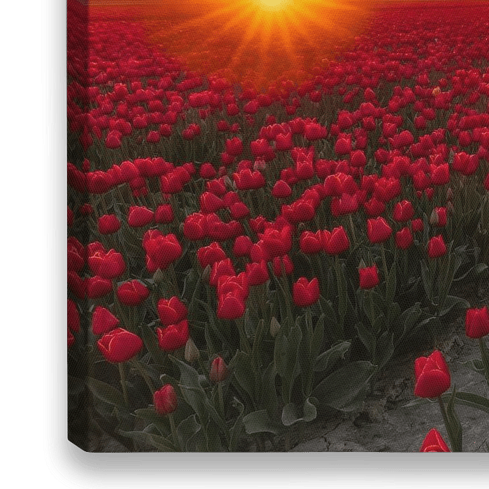 Koop dit bloemen kunstwerk Rode Tulpen met Zonsondergang van Zwoele Plaatjes op canvas, aluminium dibond, (ingelijste) fotoprint, behang en ArtFrame, op maat geprint in Fine-Art kwaliteit.