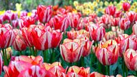 Prachtige rode-witte tulpen. Deze foto is gemaakt tijdens een tulpenroute door de kop van Noord-Holland in april 2022.