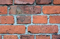 Oppervlak van een bakstenen gevel van een huis van gebakken rode bakstenen in de binnenstad van Maagdenburg in Duitsland