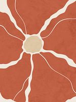 Abstracte minimalistische illustratie van een klaproos. De achtergrond is licht beige. De bloem heeft een lichte structuur.
