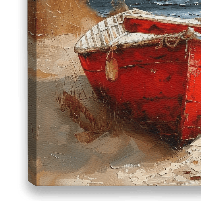 Koop dit schilderij Rode boot op het strand van ARTemberaubend als reproductie geprint op canvas, aluminium dibond, (ingelijste) fotoprint, behang en ArtFrame. Voor jou op maat geprint in Fine-Art kwaliteit.