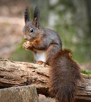 Rode eekhoorn in het bos met nootje van By Marjolein Design