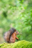 Koop de foto Rode eekhoorn in het groen van Elles Rijsdijk op canvas, aluminium dibond, (ingelijste) fotoprint, behang en ArtFrame, op maat geprint in Fine-Art kwaliteit.