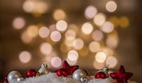 Rode en witte kerstversieringen op sneeuw van Alex Winter