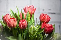 Tulpenboeket bloemen in rood en wit.