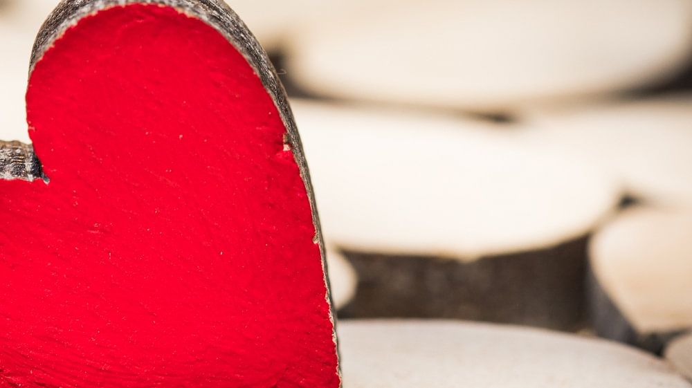 Rode houten liefdes hart achtergrond voor een romantische boodschap voor Valentijnsdag