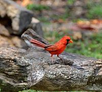 Deze rode kardinaal (Cardinalis cardinalis) is op 7 mei 2024 gefotografeerd in Miami, Florida.