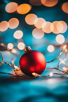 Een gloeiende rode kerstbal glinstert tegen een zachtblauwe achtergrond, terwijl delicate feeërieke lichtjes een magische sfeer creëren. Deze feestelijke compositie nodigt je uit om de geest van de feestdagen te vieren. Perfect voor de woonkamer, waar het gezelligheid en vreugde brengt in de kersttijd.