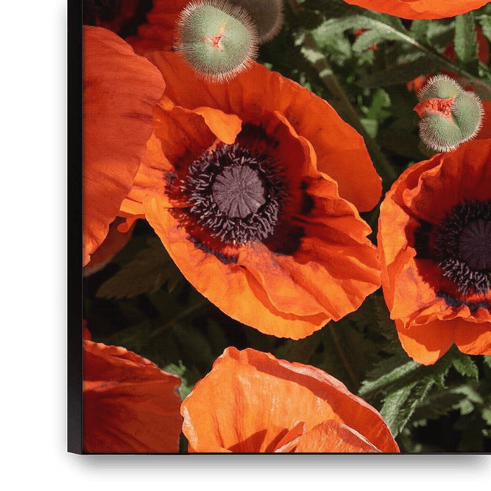 Koop dit bloemen kunstwerk Rode klaprozen en groene bladeren 1 van Adriana Müller op canvas, aluminium dibond, (ingelijste) fotoprint, behang en ArtFrame, op maat geprint in Fine-Art kwaliteit.