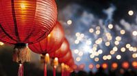 Rode lampions en vuurwerk voor het nieuwe jaar van Frank Heinz