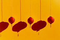 In helder geel zwaaien chique rode lantaarns zachtjes in de kamer en werpen speelse schaduwen die de sfeer leven inblazen. Hun levendige kleuren en harmonieuze opstelling voegen een vleugje exotiek toe aan elke kamer. Perfect voor de woonkamer om een uitnodigende en warme sfeer te creëren.