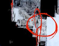abstracte schilderkunst in grijze, witte, zwarte en rode lak, moderne, spontane, gestructureerde achtergrond, decoratieve muurschildering voor kantoor, praktijk of woonruimte, fancy, grafische, niet-representatieve, hedendaagse schilderkunst