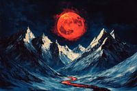 Koop dit landschapskunstwerk Rode maanverlichte nacht boven de bergen van Poster Art Shop op canvas, aluminium dibond, (ingelijste) fotoprint, behang en ArtFrame, op maat geprint in Fine-Art kwaliteit.