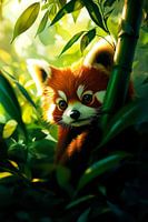 Dit prachtige ontwerp toont een rode panda die nieuwsgierig tussen het groen van bamboebladeren glinstert. De levendige kleuren en gedetailleerde weergave brengen dit charmante dier tot leven. De warme roodtinten van de panda contrasteren perfect met het frisse groen van de bamboe, wat een harmonieuze en uitnodigende uitstraling geeft. Dit ontwerp straalt energie en speelsheid uit, ideaal om een vrolijke sfeer in je ruimte te creëren. Perfect voor liefhebbers van dieren en natuur, en geschikt voor slaapkamers of hobbykamers.